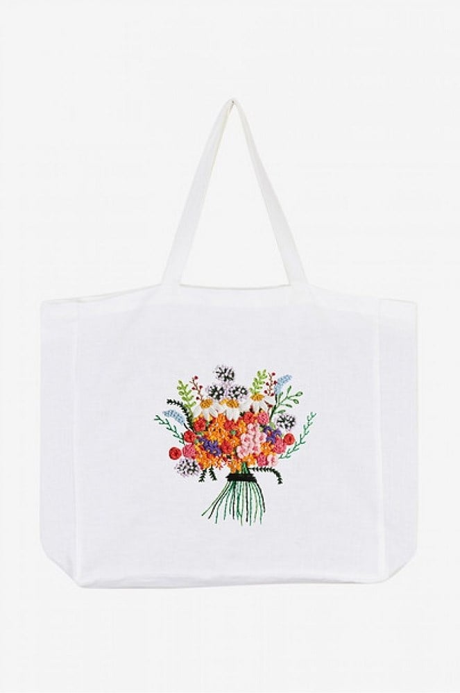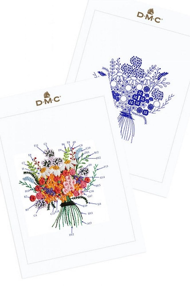 Borduurpatroon Bloemenboeket - Ben je op zoek naar een uitdagend borduurpatroon? Dan is dit fleurige bloemenboeket wellicht iets voor jou. Trek het patroon eenvoudig over op stof en borduur dit op de Provence geïnspireerde kleurenfestijn op je tas, kussen of schilderij.